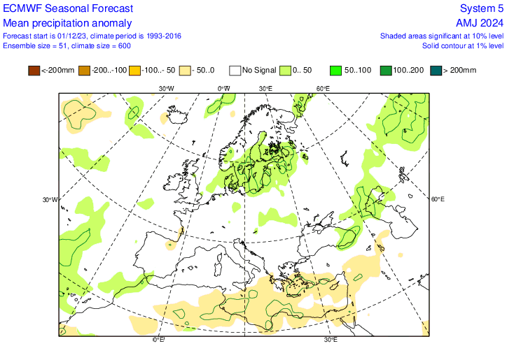 Le anomalie delle temperature e precipitazioni, elaborate dal famoso centro di calcolo ECMWF per i prossimi quattro mesi: Gennaio, Febbraio, Marzo e Aprile 2024.