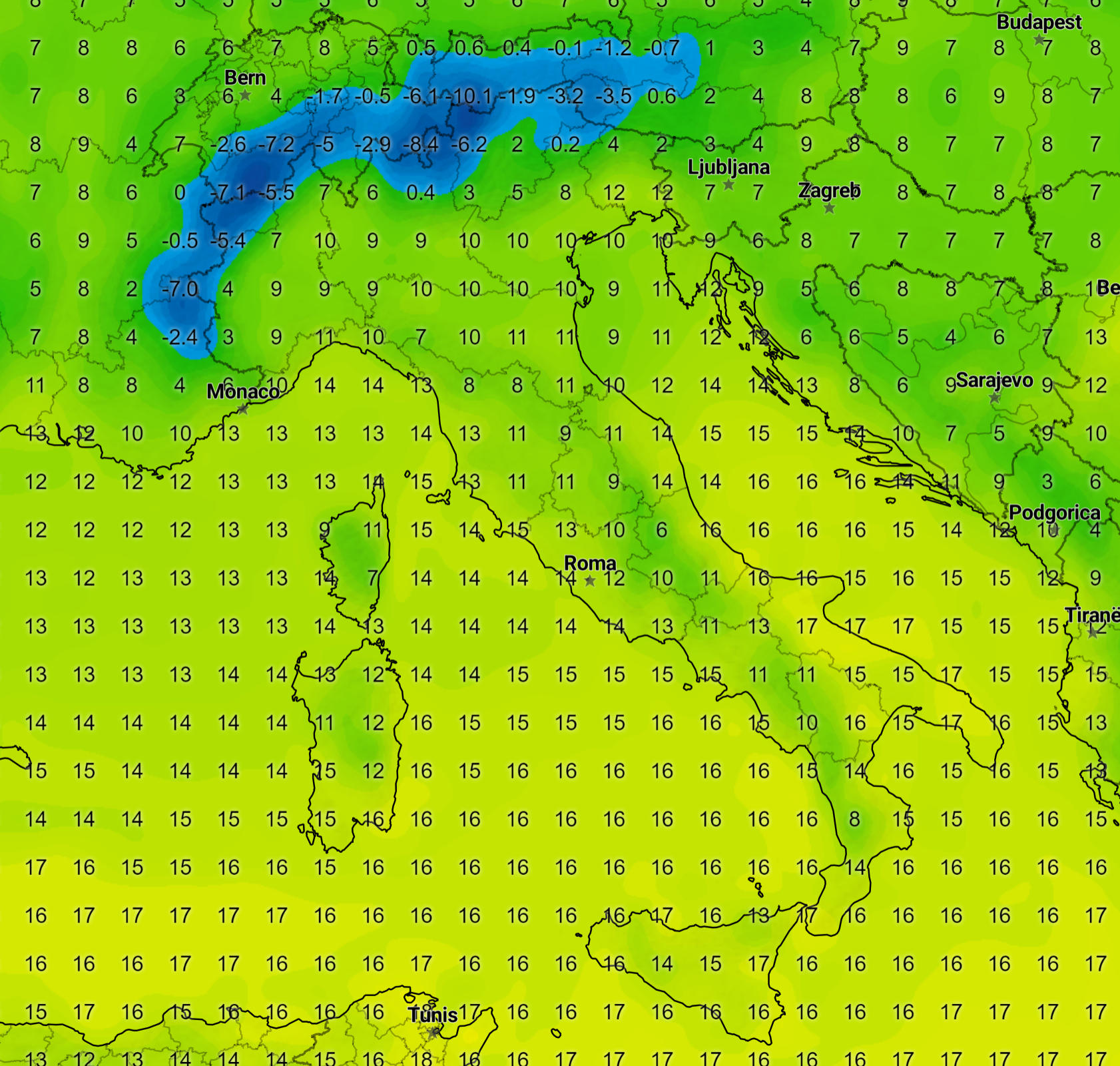 Le temperature rimangono superiori alla media come si vede dall’elaborazione: