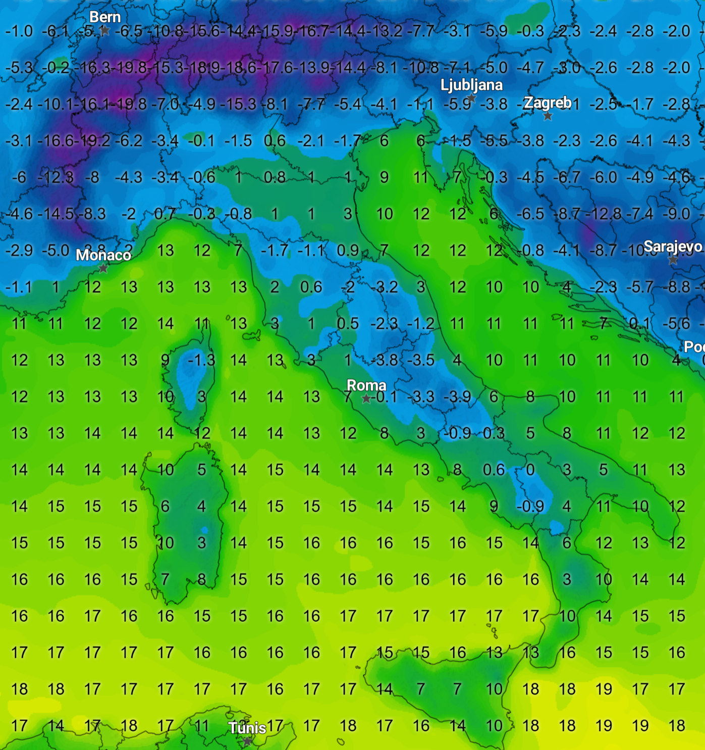 Come si può notare sono valori più invernali che autunnali e dovrebbero perdurare per qualche giorno, poi dovrebbe arrivare un anticiclone che dovrebbe portare un rialzo delle temperature.